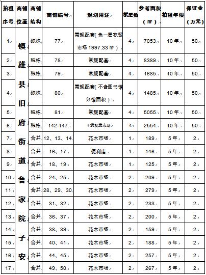 十二、拍租會(huì)地點(diǎn):鎮(zhèn)雄縣燈光球場(鎮(zhèn)雄縣烏峰鎮(zhèn)五一路48-49號)。