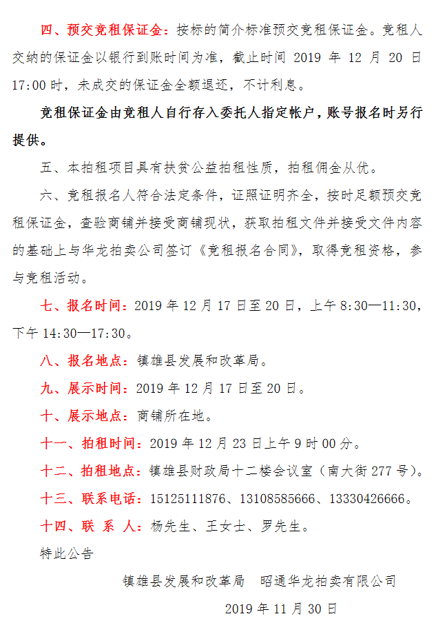 鎮(zhèn)雄縣魯家院子安置點(diǎn)商鋪使用權(quán)拍租公告