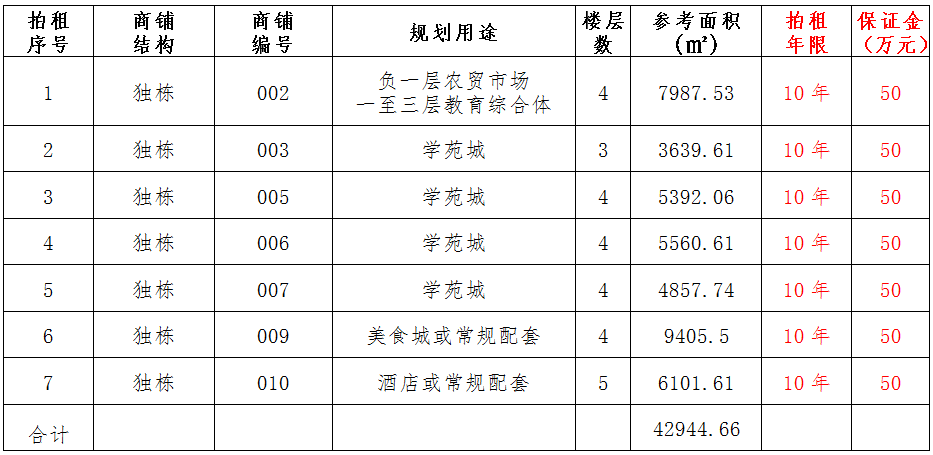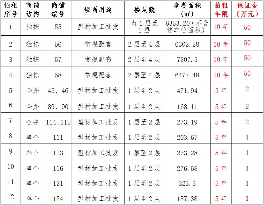 (一)拍租位于鎮(zhèn)雄縣南臺街道呢嚕坪安置點(diǎn)7棟獨(dú)立商鋪使用權(quán)。以棟為單位拍租。詳見下表: