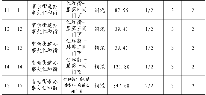拍租15個(gè)國(guó)有門(mén)面使用權(quán),詳見(jiàn)下表: